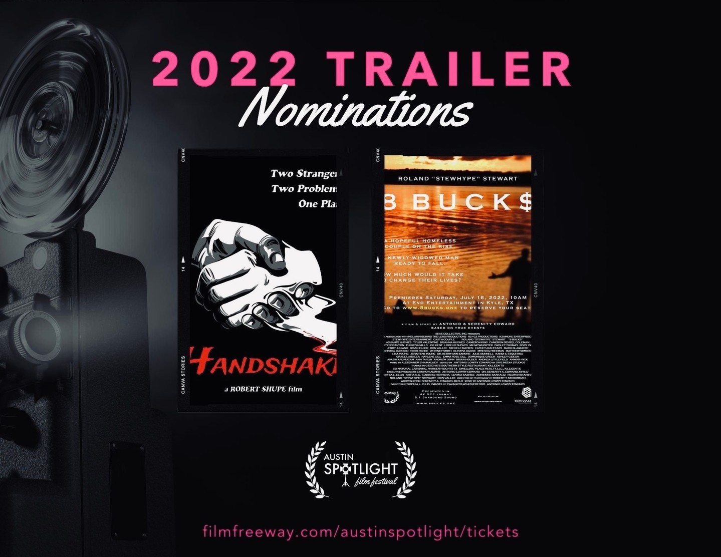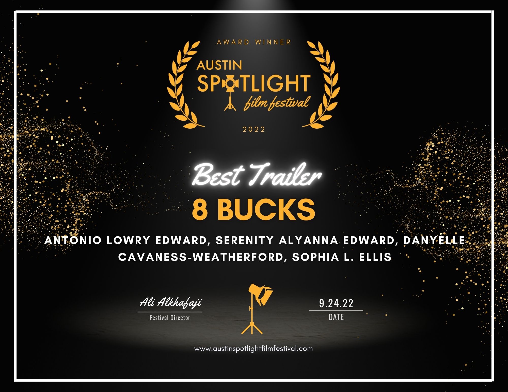 The 8 Bucks Trailer (Number 2) is officially selected by the judges of the Austin Spotlight Film Festival 2022.