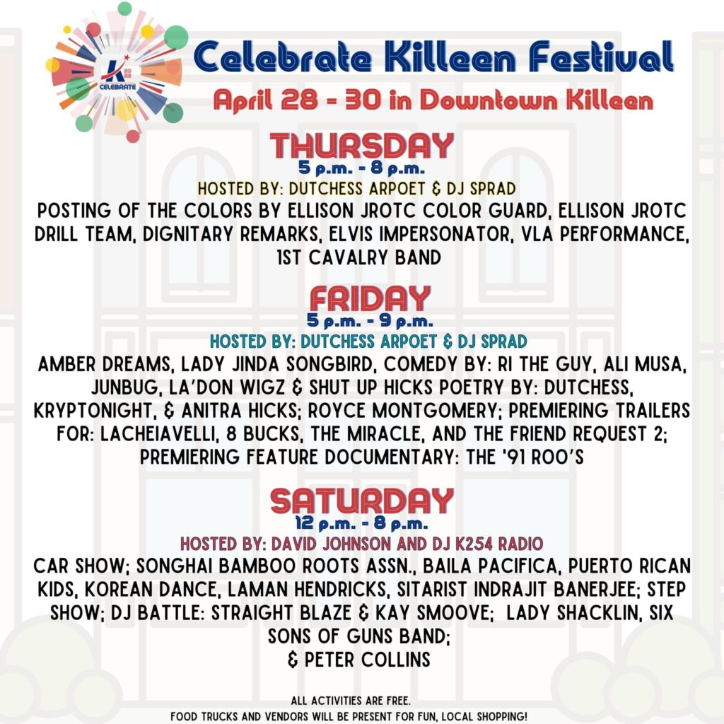 Event Link: The City of Killeen site Calendar | Event Page | Event Flyer